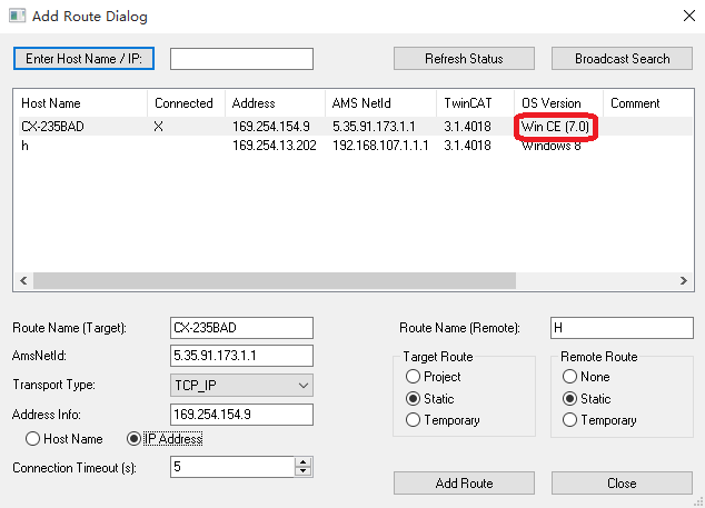 選中目標(biāo)機(jī)器:(確定PC的IP地址網(wǎng)段與控制器保持一致)