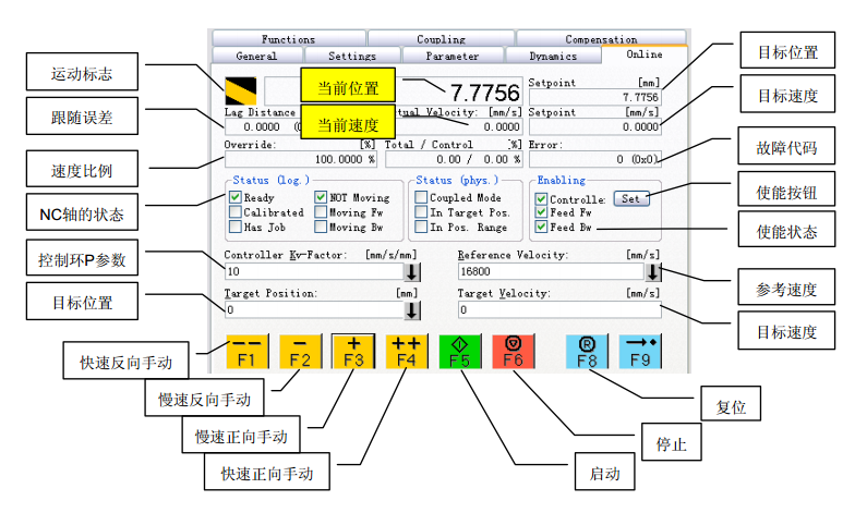 F5:按指定速度 Target Velocity 運(yùn)動到指定位置 Target Position。