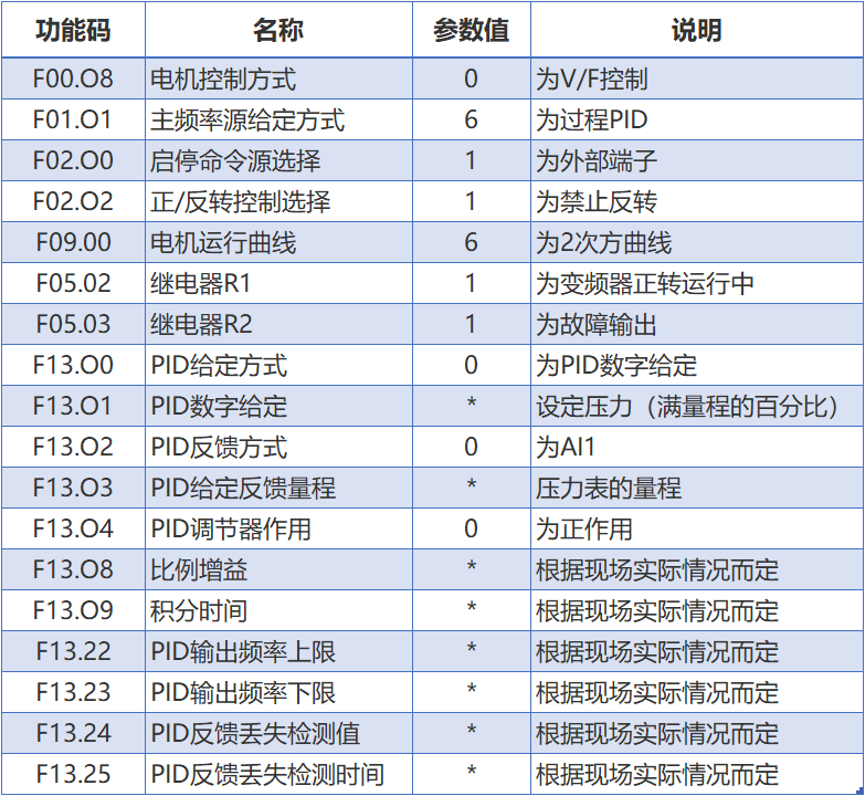 在主要功能預置方面,最高頻率應以電動機的額定頻率為變頻器的最高工作頻率。升、降速時間在采用變頻器內置PID調節(jié)。升、降速時間應盡量設定得短一些,以免影響由PID調節(jié)器決定的動態(tài)響應過程。控制原理如下: